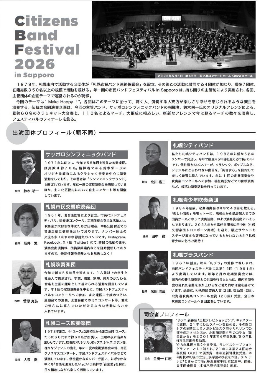 2026年4月12日(日)・・・第47回市民バンドフェスティバル in Sapporo
